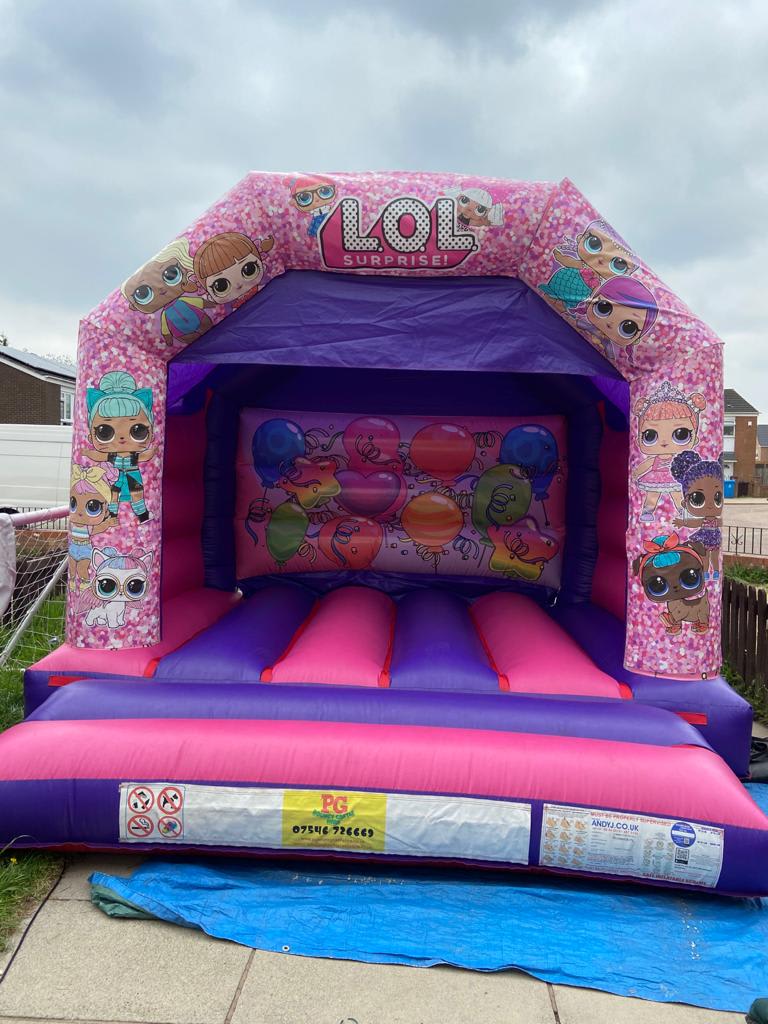 Secure your 10 ft x 12 ft Lol Surprise Dolls Bouncy Castle now. Contact PG Bouncy Castle Hire for reliable, fun-filled entertainment.