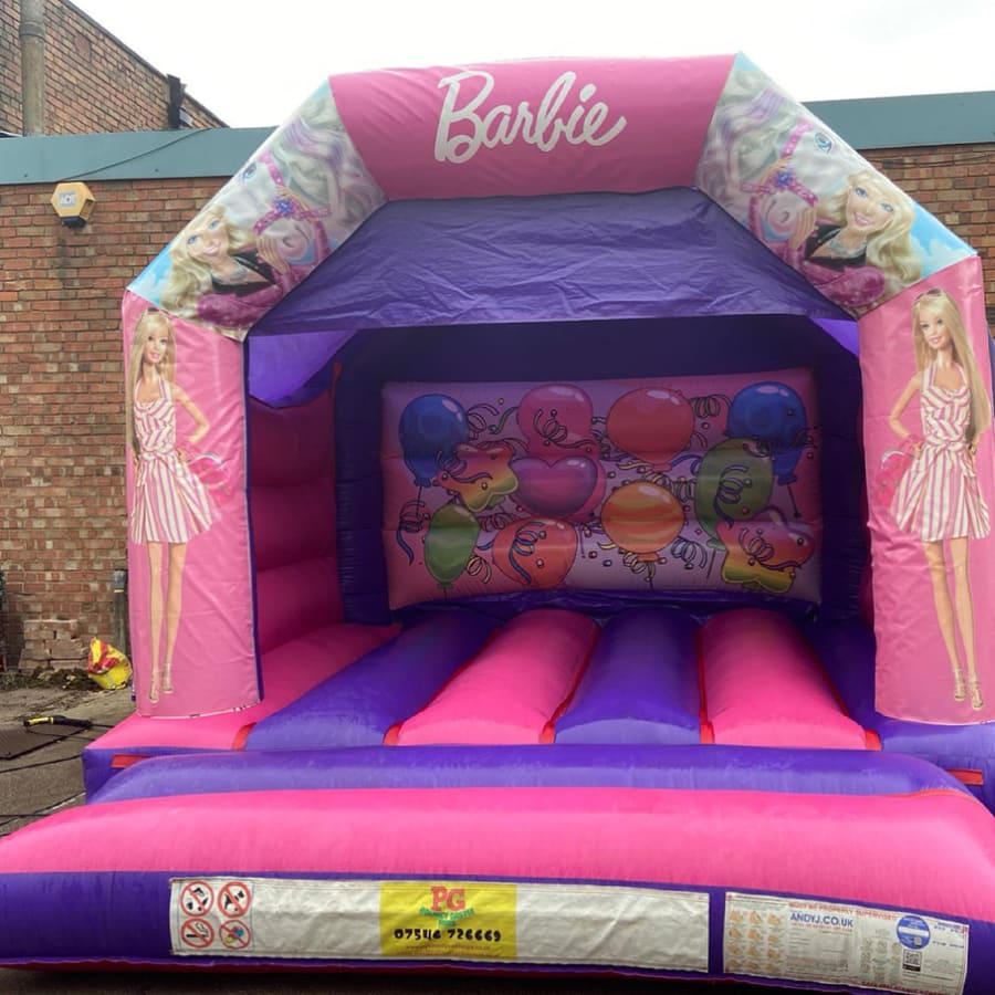 Pg bouncy castle hire 12 ft x 12 ft Barbie Bouncy Castle in Widnes, Runcorn, Liverpool, Warrington, St. Helen's, Northwich and Frodsham — bright, safe and built for nonstop fun. π This inflatable bouncy castle is perfect for birthday parties, school fun days, community events and family gatherings. Kids get a colourful, themed play space. Parents get reliable, affordable party rental equipment and clean, safe equipment every time.