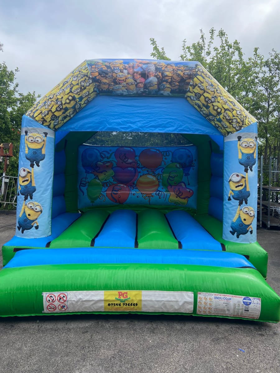 We offer prompt delivery and professional setup across our service area. Pg bouncy castle hire 12 ft x 12 ft Minions Bouncy Castle in Widnes, Runcorn, Liverpool, Warrington, St. Helen's, Northwich and Frodsham includes: