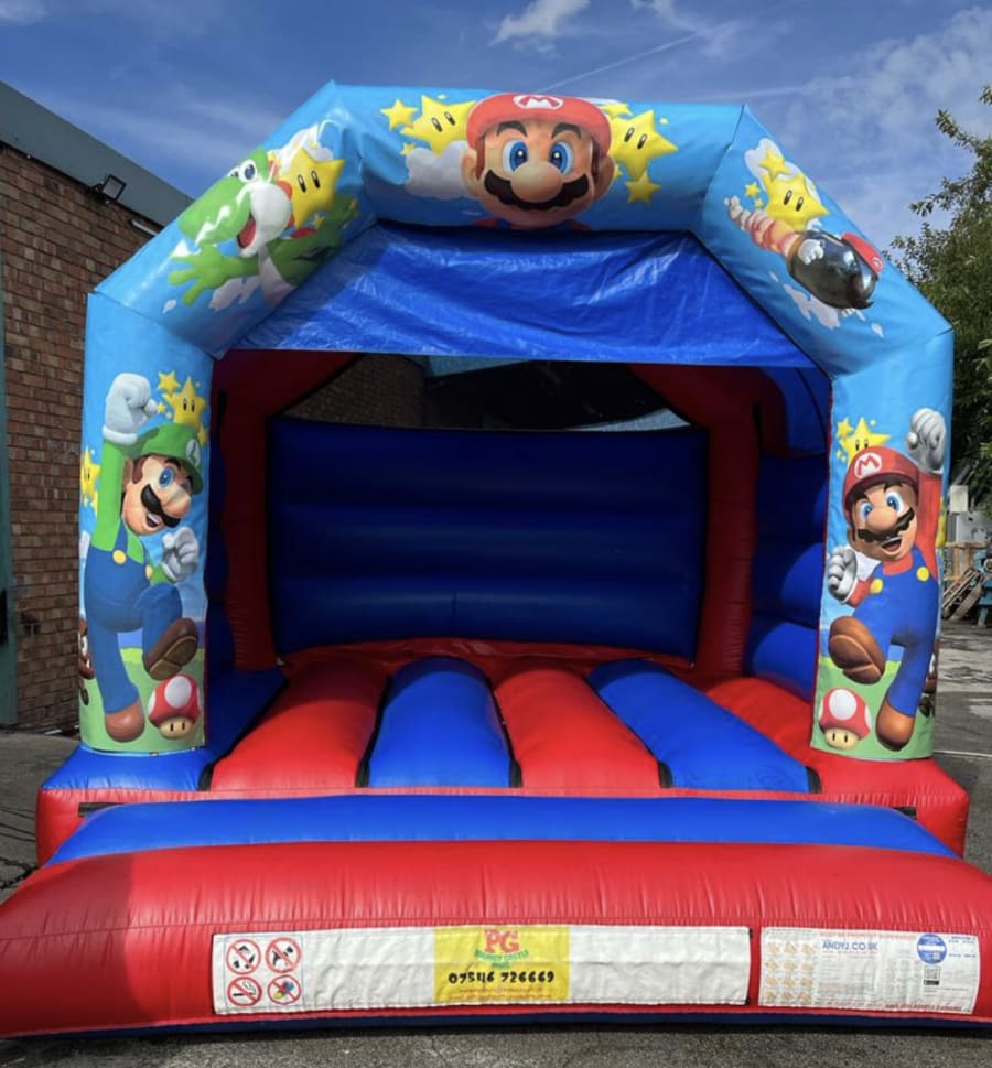 Pg bouncy castle hire 12 ft x 12 ft Super Mario Bouncy Castle in Widnes, Runcorn, Liverpool, Warrington, St. Helen's, Northwich and Frodsham