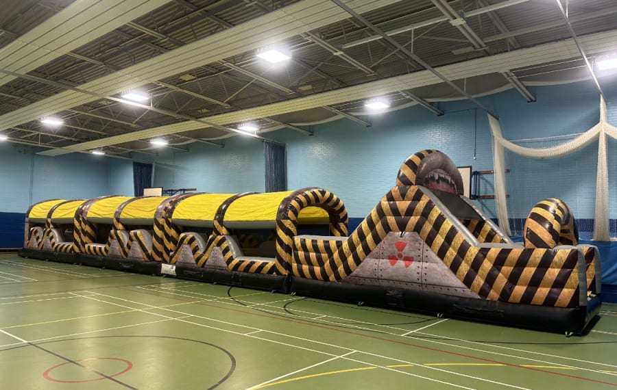 - Pg bouncy castle hire 10 ft x 90 ft Battle Zone Assault Course in Widnes