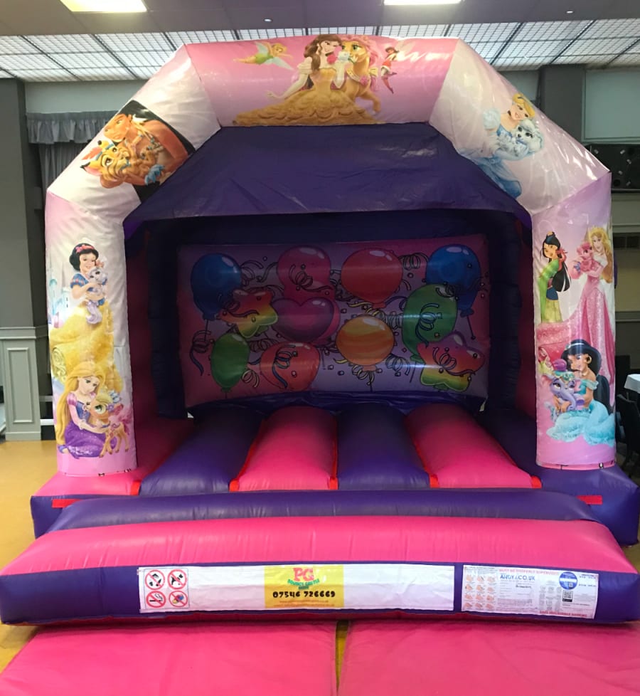 Pg bouncy castle hire 12 ft x 12 ft Disney Princess Bouncy Castle in Widnes, Runcorn, Liverpool, Warrington, St. Helen's, Northwich and Frodsham ππ°