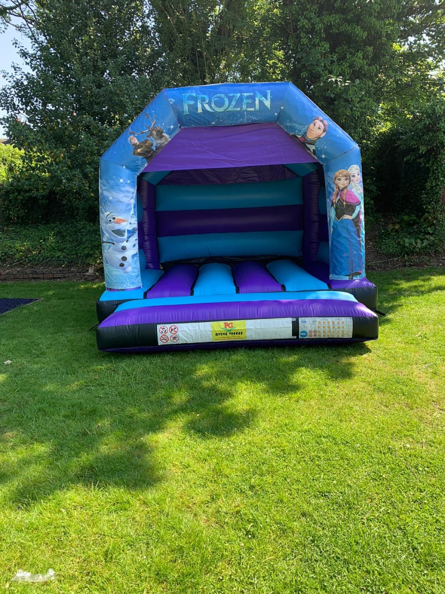 Pg bouncy castle hire 12 ft x 12 ft Frozen Bouncy Castle in Widnes, Runcorn, Liverpool, Warrington, St. Helen's, Northwich and Frodsham delivers magical, eye-catching inflatable fun for parties, school events and family get-togethers. βοΈπ This vibrant Frozen 2 themed bouncy castle features Elsa and Anna artwork and fits most gardens, halls and venue spaces. Safe, insured and easy to book online. π§π