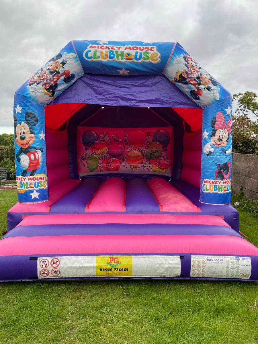 Make birthday parties memorable with our vibrant 12 ft x 12 ft Mickey & Mini Bouncy Castle. Book the PG BOUNCY CASTLE HIRE 12 ft x 12 ft Mickey & Mini Bouncy Castle in Widnes, Runcorn, Liverpool, Warrington, St. Helen's, Northwich and Frodsham for nonstop fun. This inflatable brings Mickey Mouse magic, bright colours, and safe play to your event. π