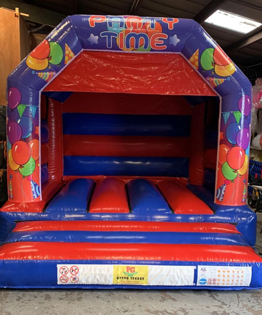 Introducing the 12 ft x 12 ft Party Time Themed Bouncy Castle in vibrant Red and Blue colours! This bouncy castle is perfect for adding an extra dose of fun and excitement to your next party or special occasion.