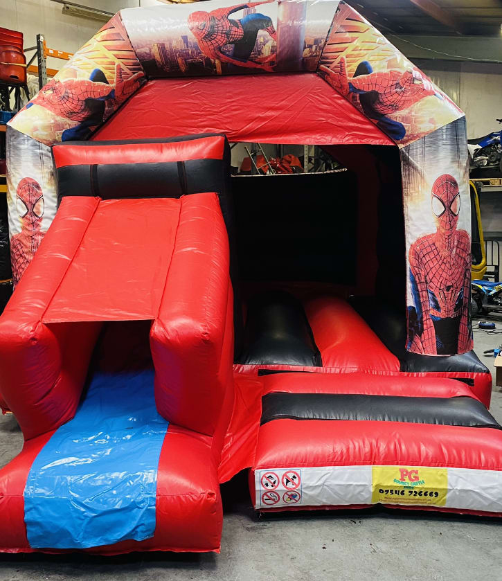 Spider-man can do what ever a spider can, Let the kids bounce around spinning webs with there friends with this eye catching Spider-Man inflatable is sure to be the main attraction at any party whether it be a birthday party in Warrington or Just a bit of fun in Liverpool let Pg Bouncy Castle Hire do the work while you enjoy some Family time,
