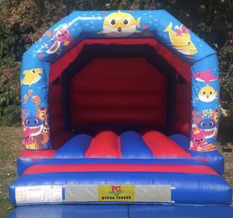Pg bouncy castle hire 12 ft x 12 ft Baby Shark Bouncy Castle in Widnes, Runcorn, Liverpool, Warrington, St. Helen's, Northwich and Frodsham