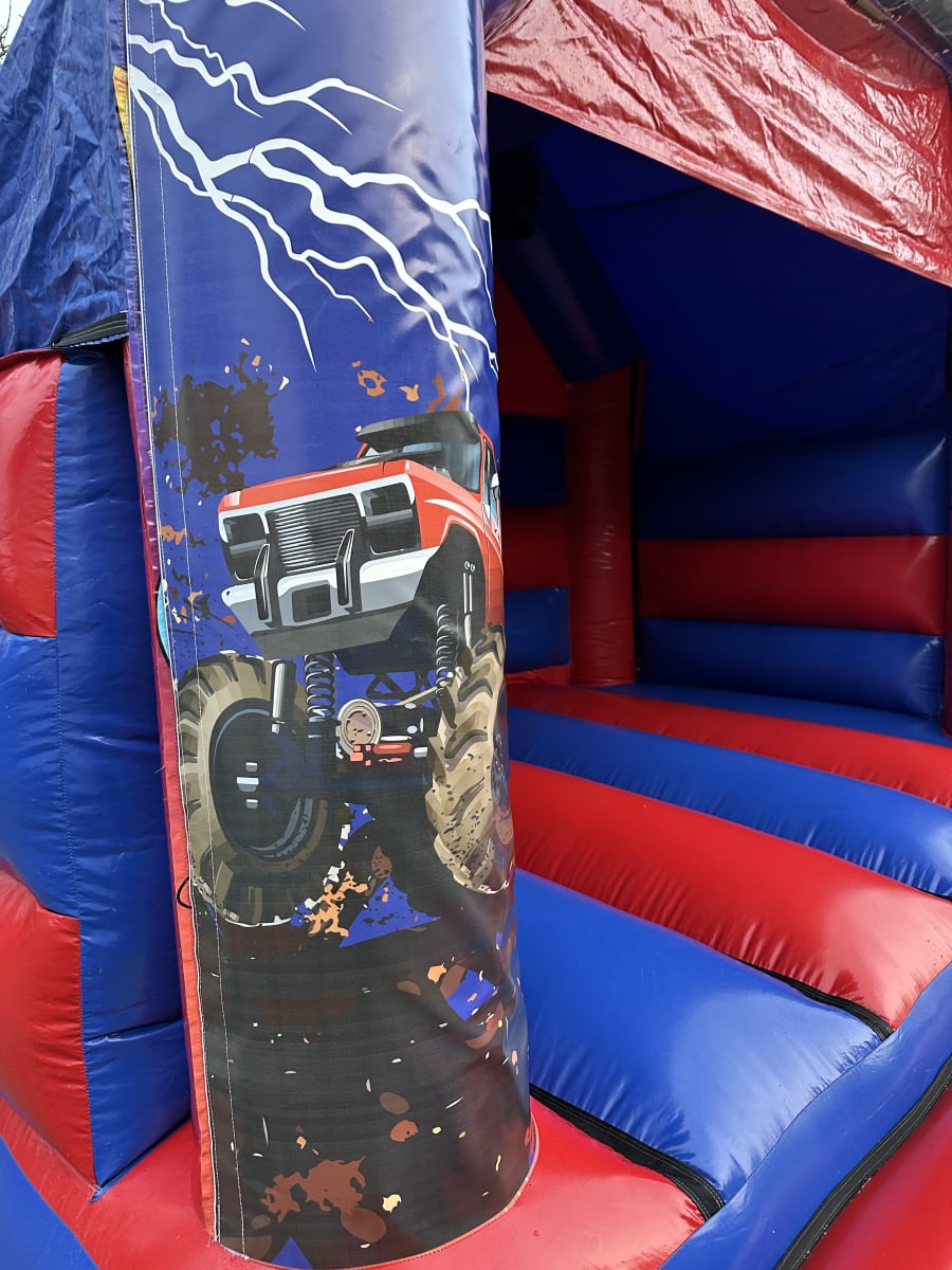 Turn your child's birthday parties into a thrilling adventure with our 12 ft x 12 ft Monster Truck Bouncy Castle. This high-energy inflatable is designed to spark the imagination of young truck enthusiasts and provide endless entertainment. Whether it's a Hot Wheels-themed party or a monster truck rally, this bouncy castle is sure to be the highlight of the day! 🎈