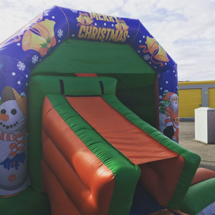 Pg bouncy castle hire 12 ft x 17 ft Merry Christmas Slide Combo Bouncy Castle in Widnes, Runcorn, Liverpool, Warrington, St. Helen's, Northwich, and Frodsham — bring festive fun to your party with a safe, colourful inflatable that kids love. ๐