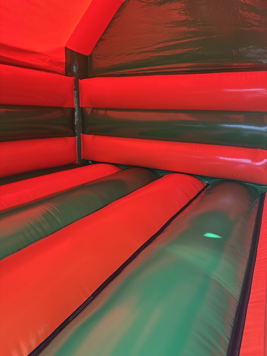 Book the 12 ft x 17 ft Green & Orange Slide Combo Bouncy Castle today. Fast quotes. 5 star service. Professional delivery across Widnes, Runcorn, Liverpool, Warrington, St. Helen's, Northwich and Frodsham.