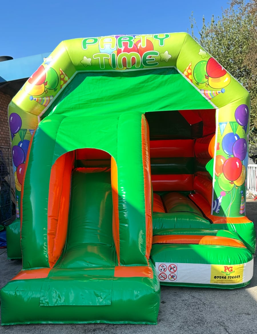 12 ft x 17 ft Green & Orange Slide Combo Bouncy Castle.