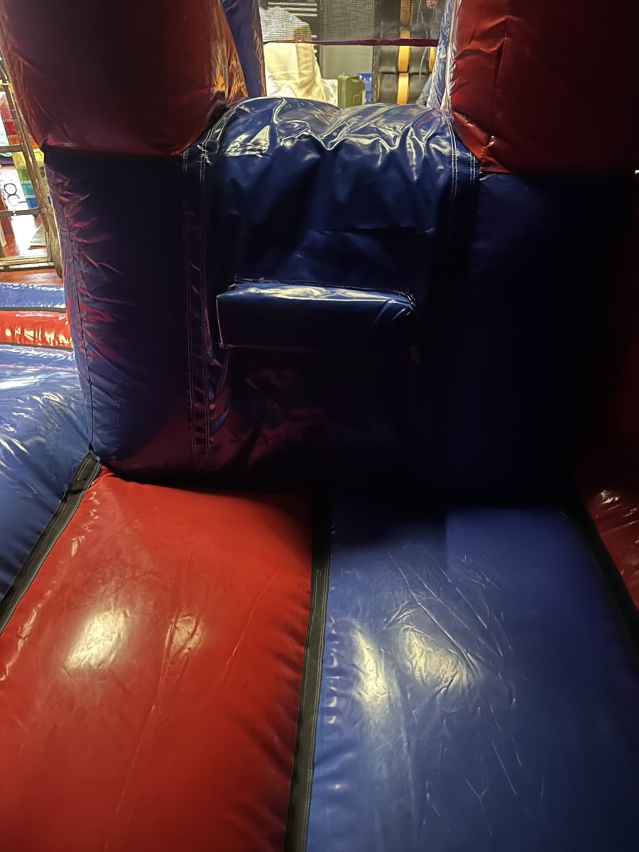 Looking to add some excitement and fun to your next party or event? Look no further than our 12 ft x 18 ft Party Time Balloons Slide Combo Bouncy Castle! This vibrant red and blue castle is the perfect centerpiece for any celebration.