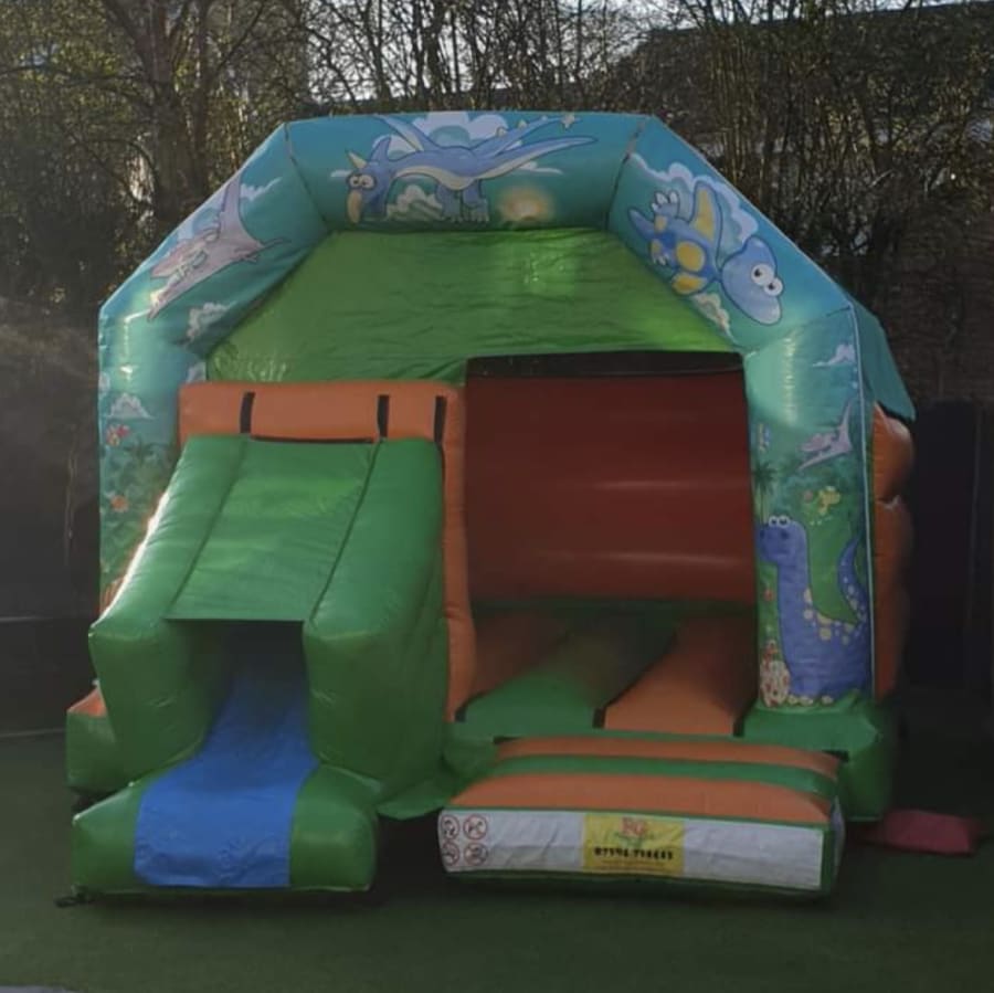 π Whether it's a birthday party, family gathering, or community event, our 12 ft x 17 ft Dinosaur Front Slide Combo Bouncy Castle is sure to be a hit. The front slide adds an extra element of excitement, allowing kids to slide down and experience the thrill of a mini-adventure.