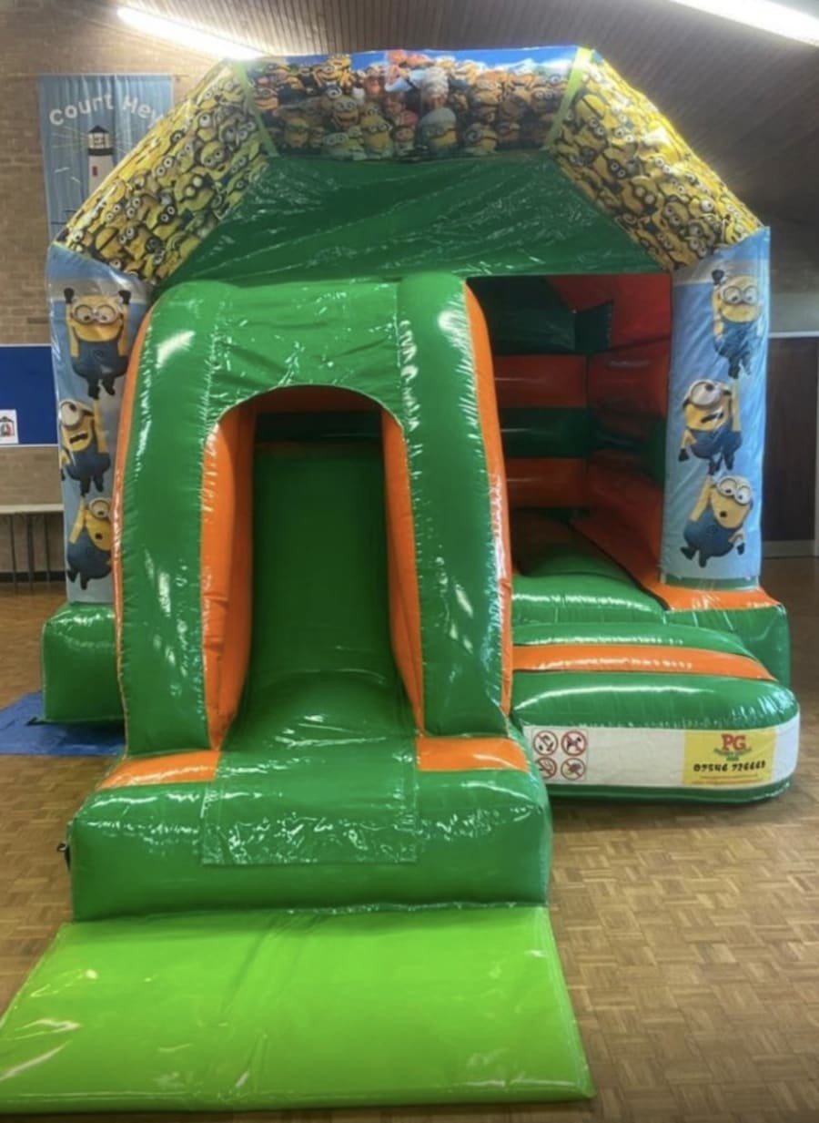 Welcome to Pg Bouncy Castle Hire Ltd, your go-to destination for the most exciting and entertaining inflatable rentals in Widnes, Runcorn, St Helens, and the surrounding areas. Our 12 ft x 17 ft Minion's Slide Combo Bouncy Castle is the perfect addition to any event, whether it's a birthday party, fundraiser, wedding, or festival.