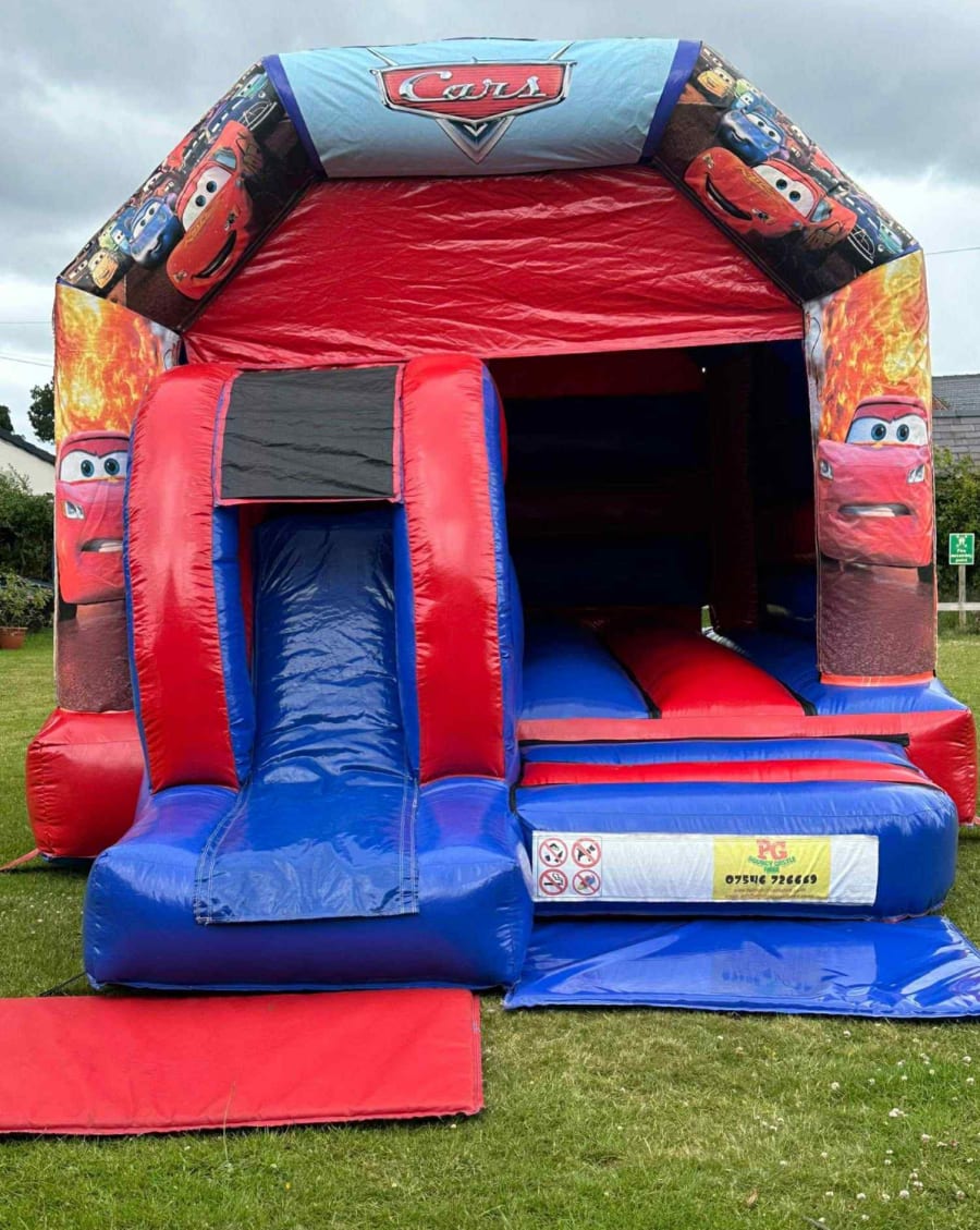 Looking for party rental equipment number 1 for bouncy castle hire? PG Bouncy Castle Hire is your trusted provider for the 12 ft x 18 ft Disney Cars Slide Combo Bouncy Castle in Widnes, Runcorn, Liverpool, Warrington, St. Helen's, Northwich and Frodsham. Our reliable delivery and setup service ensures everything runs smoothly, so you can focus on enjoying the day.