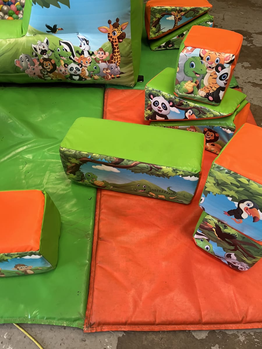 12 ft x 17 ft Jungle Slide Combo Bouncy Castle Soft Play & 6 ft x 7 ft Ball Pit 1000 Balls 3 mats