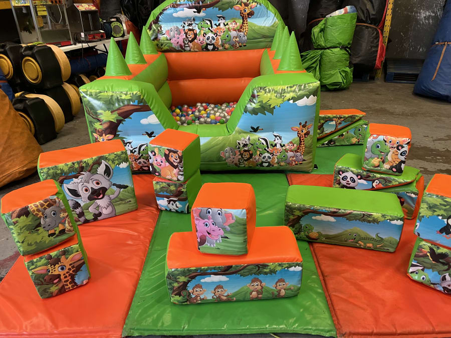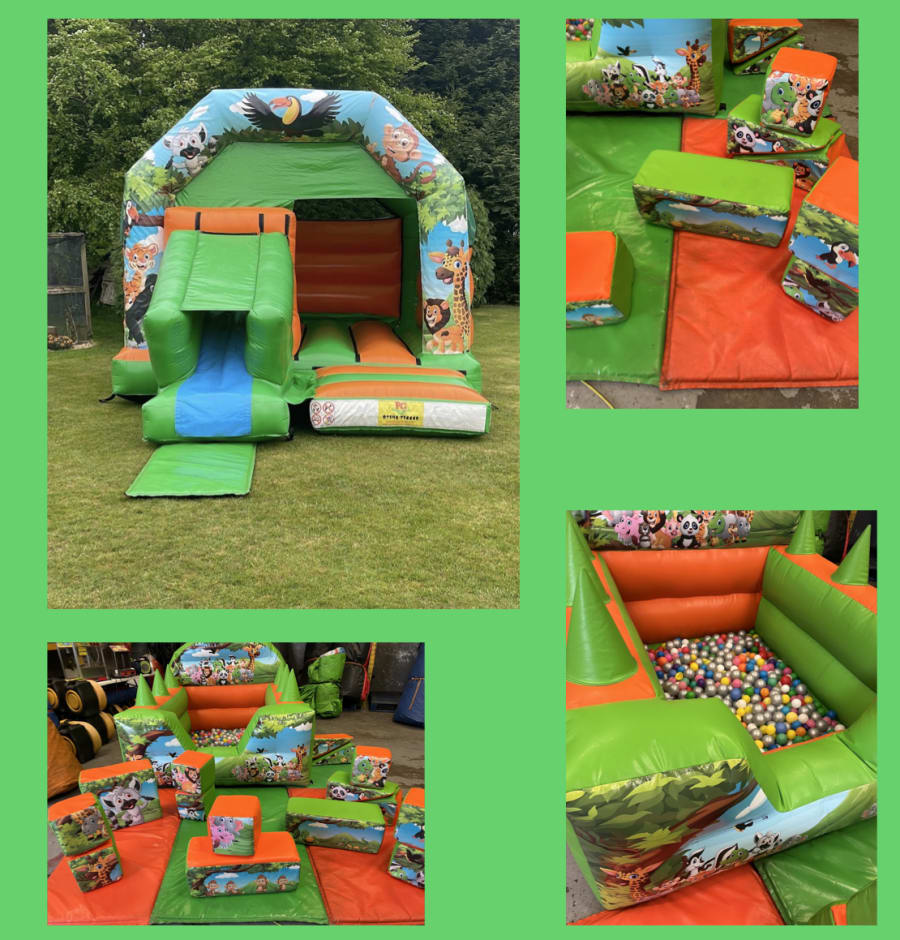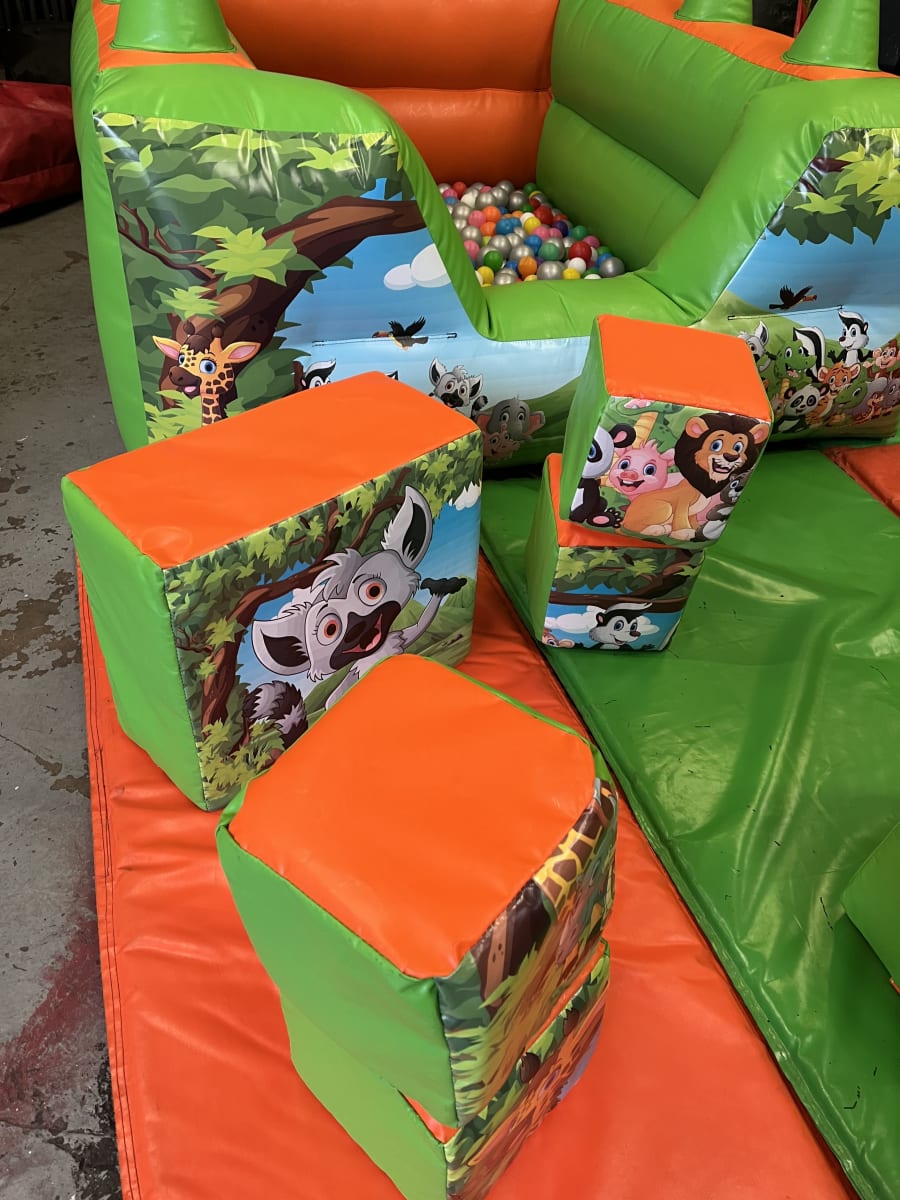 Looking for the ultimate inflatable fun for your next event? Look no further than our 12 ft x 17 ft Jungle Slide Combo Bouncy Castle Soft Play & 6 ft x 7 ft Ball Pit! This incredible bouncy castle combo is packed with excitement and will keep kids entertained for hours.